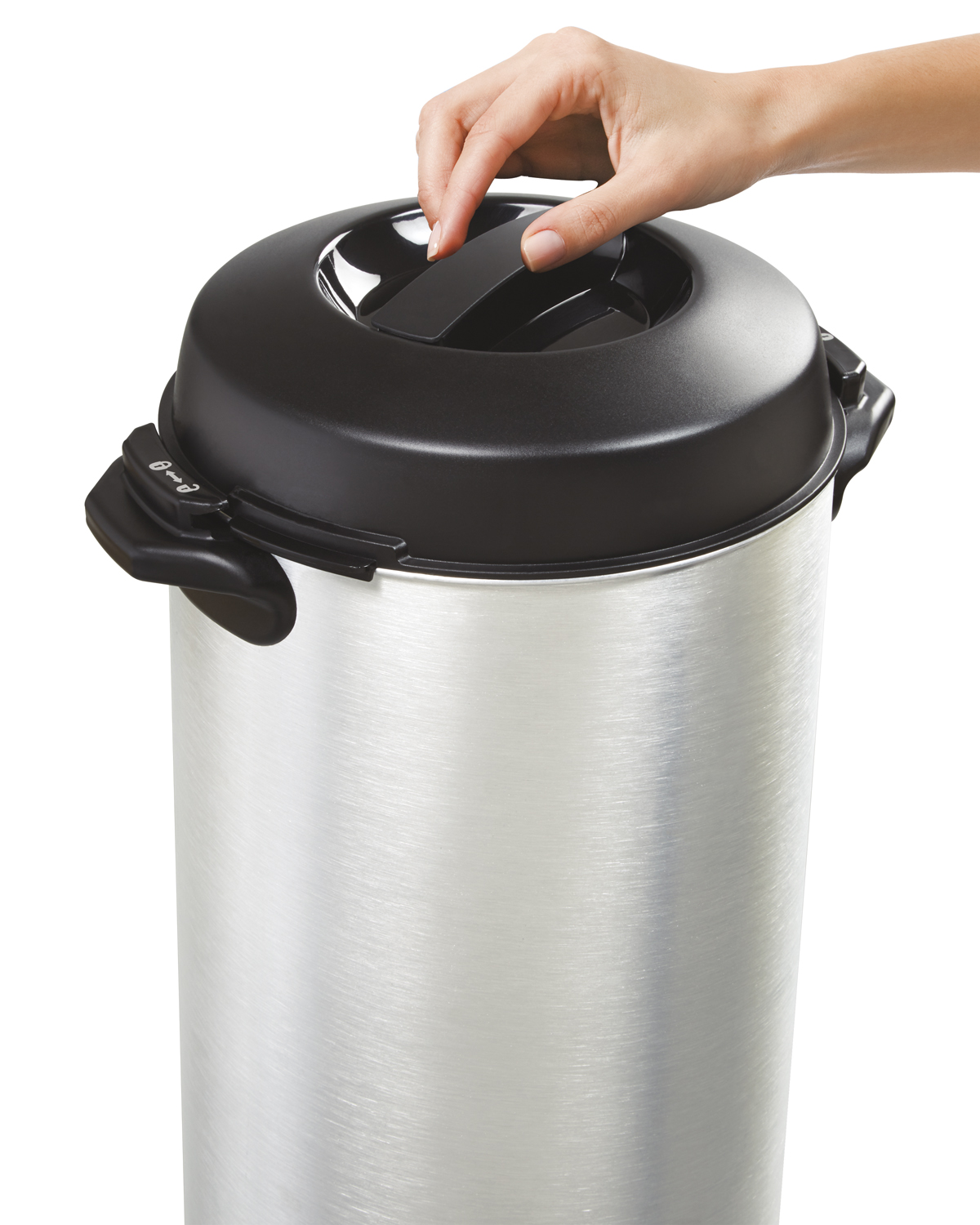 • Tapa de cierre por torsión y asas grandes reducen los derrames y ofrecen un fácil transporte